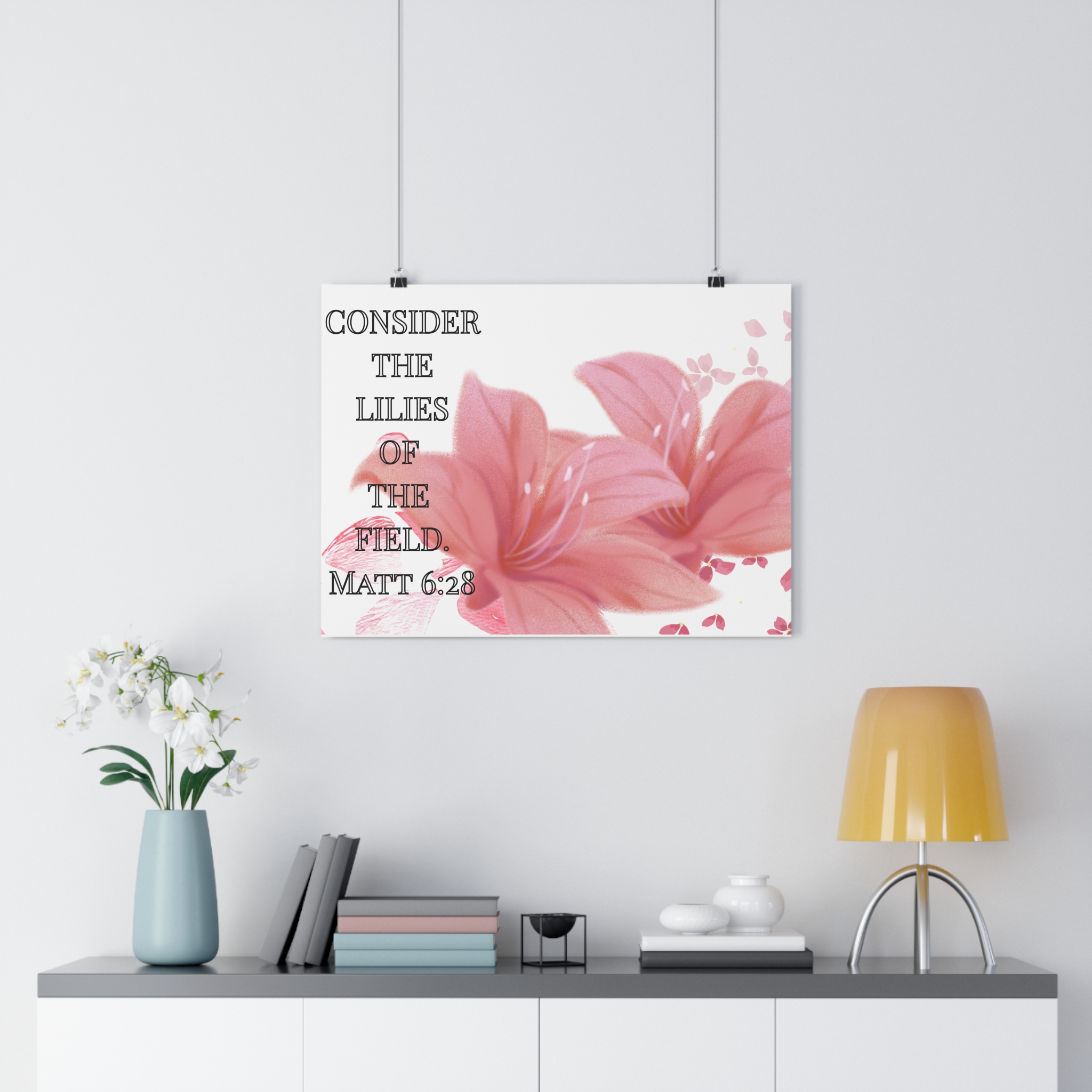 Consider the Lilies of the Field — Floral Scripture Poster (Matt 6:28) NOT FRAMED