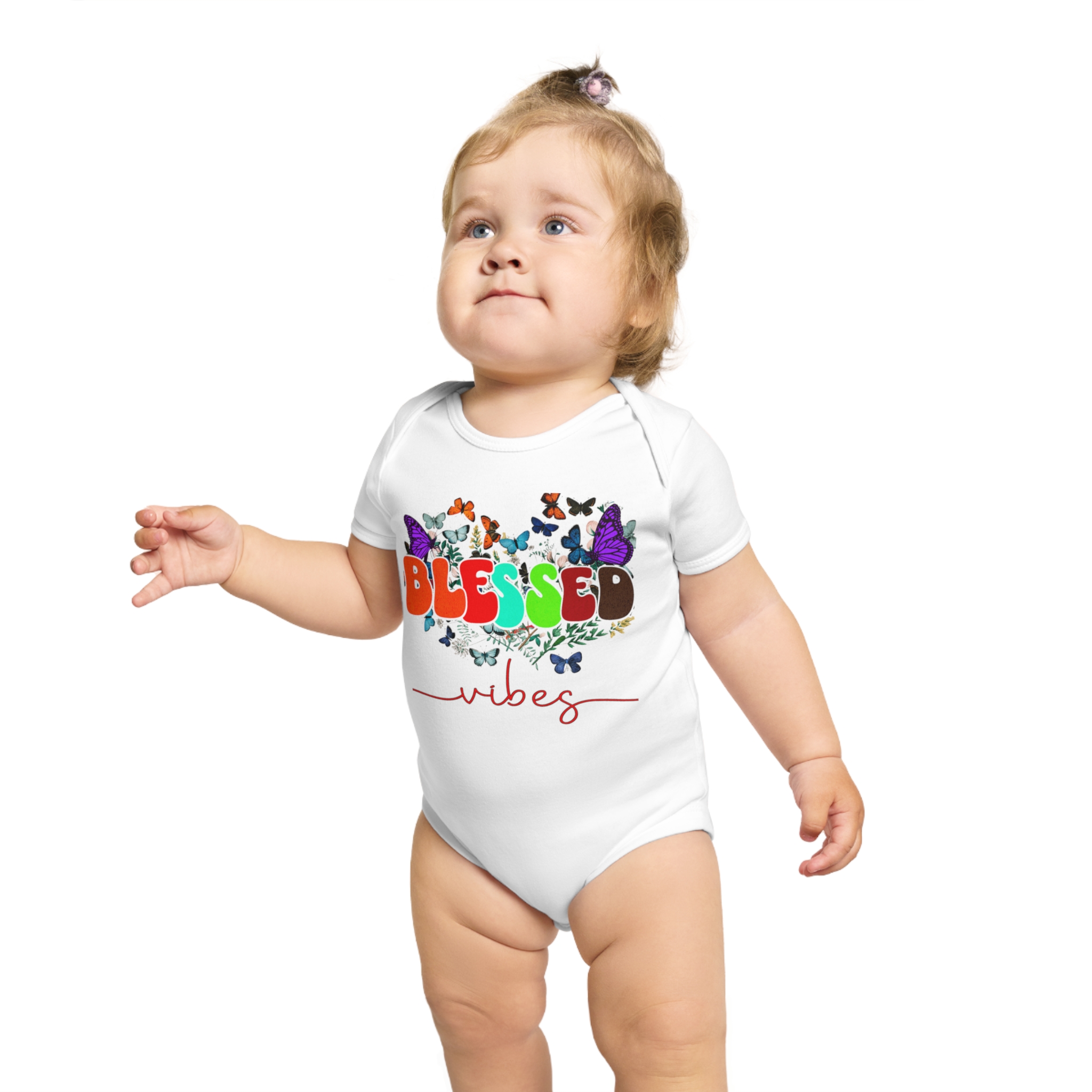 Blessed Vibes Baby Bodysuit – Colorful Butterfly Newborn Onesie