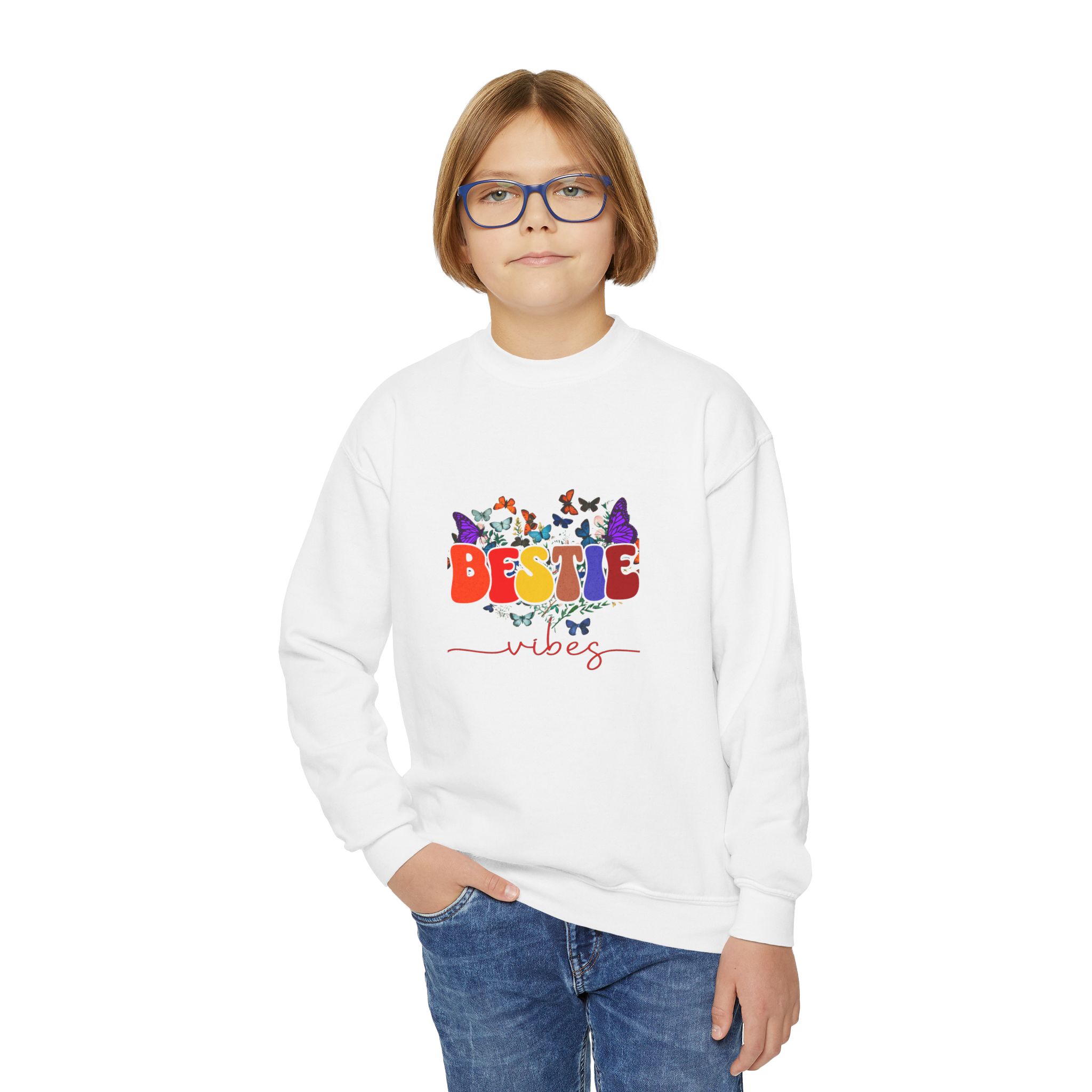 Bestie Vibes Youth Crewneck Sweatshirt – Colorful Butterfly Friendship Design