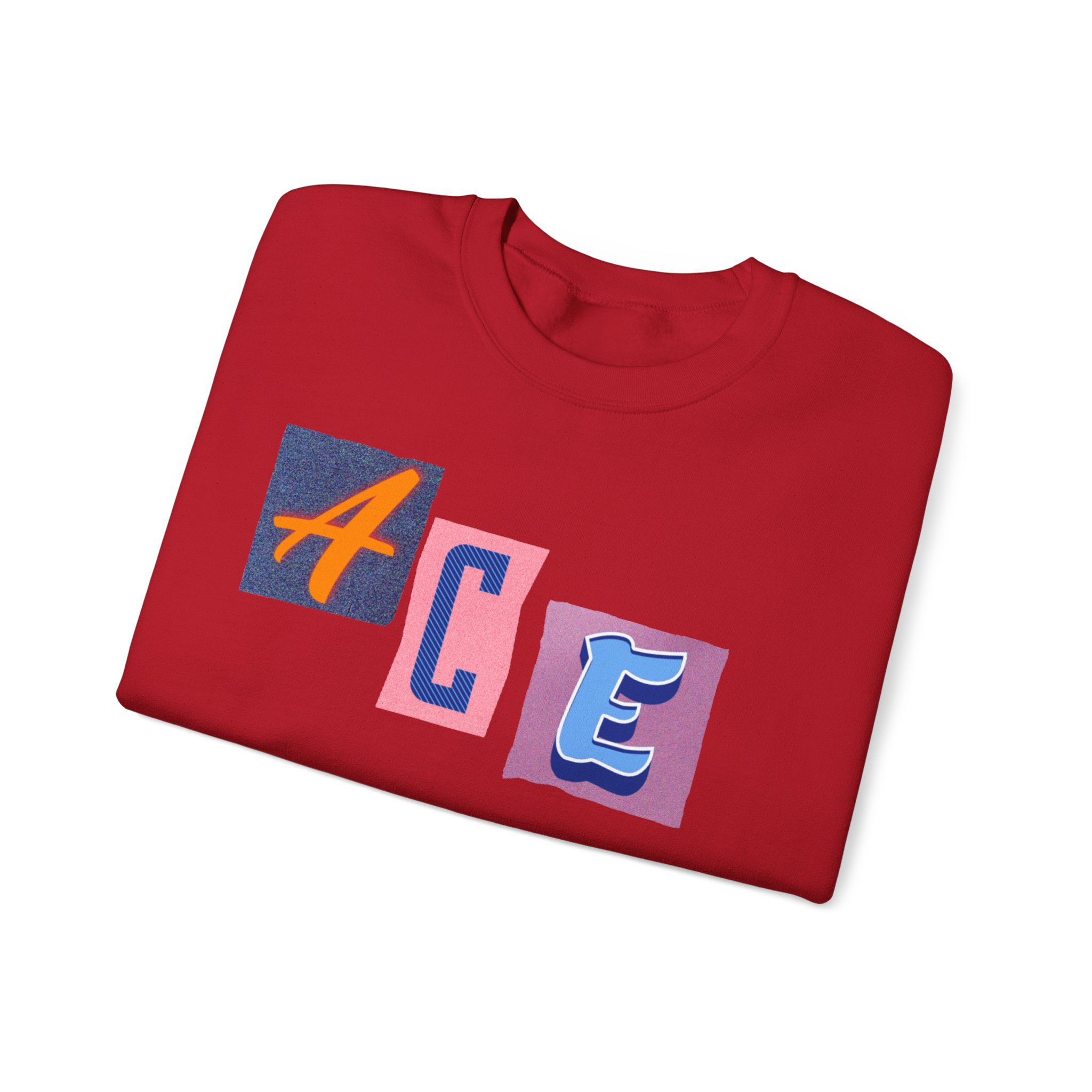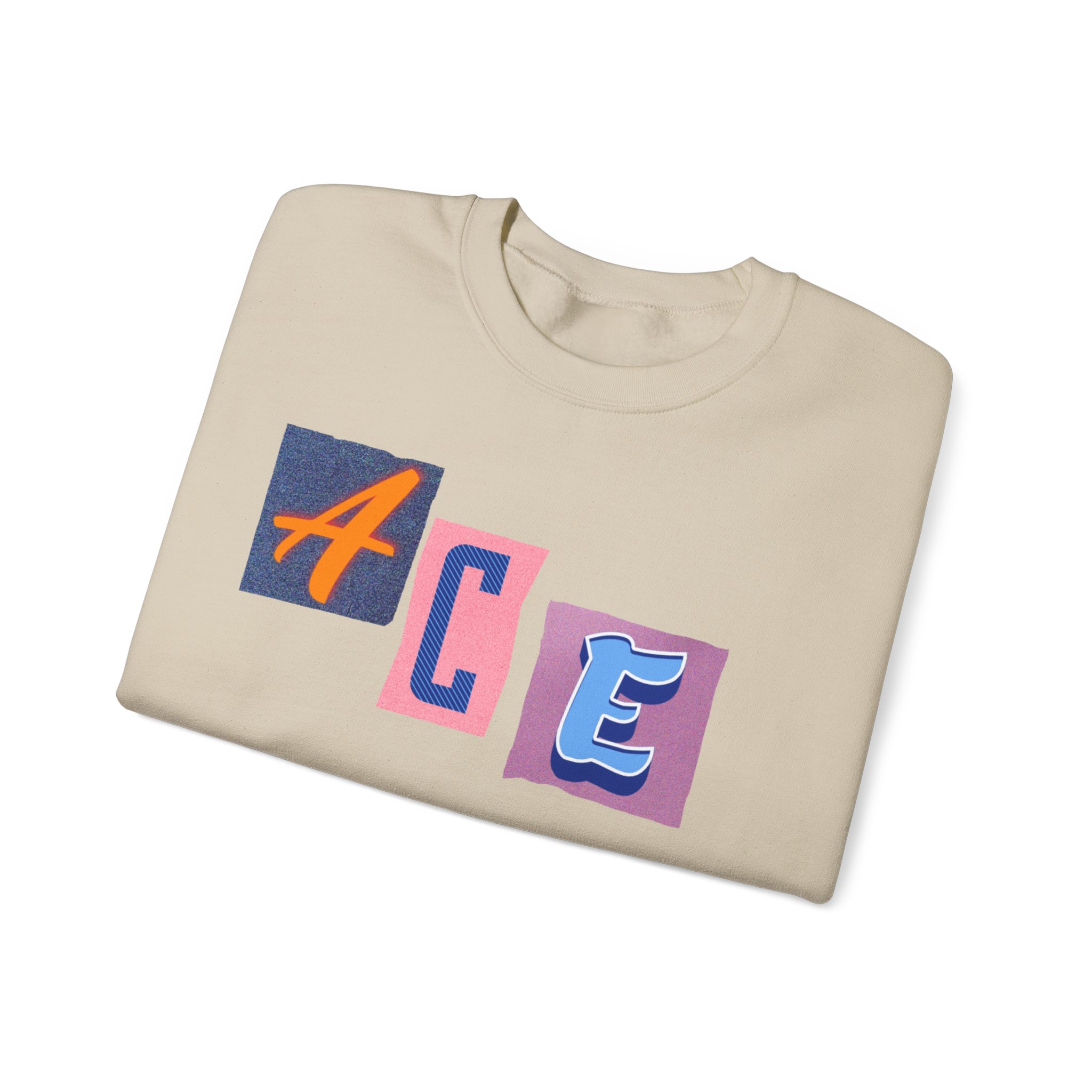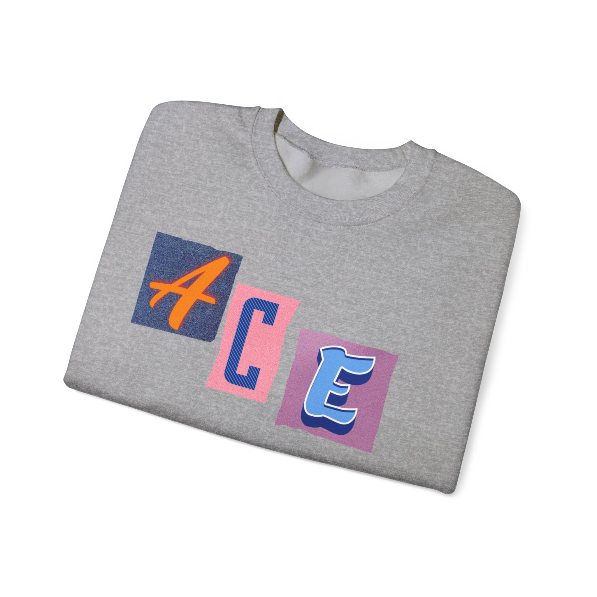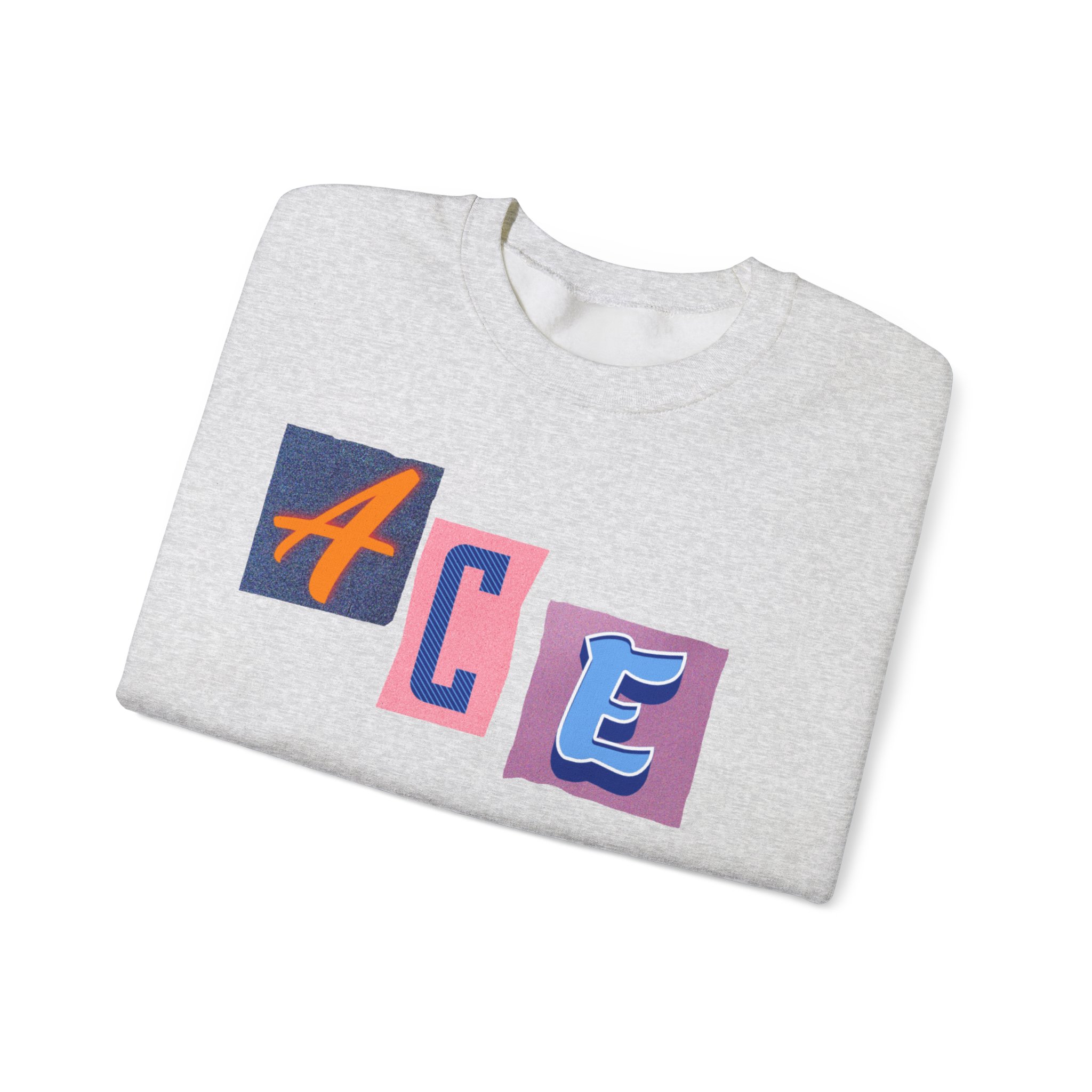This cozy crewneck sweatshirt carries a playful, collage-style graphic that reads “ACE LIFE” in colorful, mismatched letter blocks. The medium-heavy cotton-poly blend feels warm and substantial without weighing you down. Classic crewneck lines, ribbed collar and cuffs, and tubular knit construction keep the silhouette clean and comfortable. It drapes easily for laid-back days at campus, meetups with friends, or chill evenings at home. The artful, slightly retro letterforms give the piece a nostalgic, creative vibe — an effortless way to show off personal flair while staying snug.