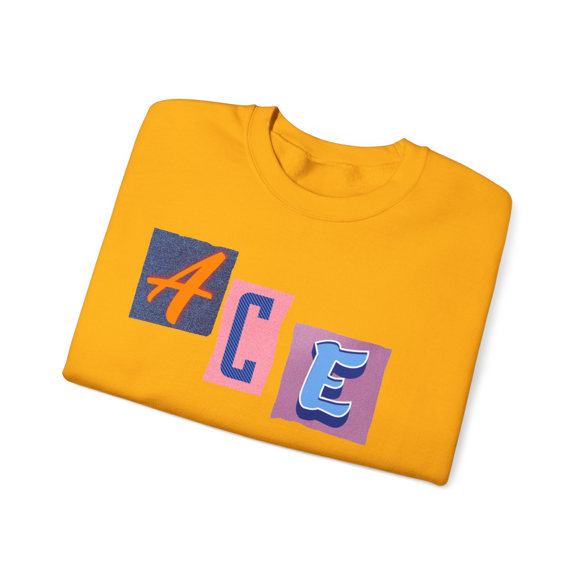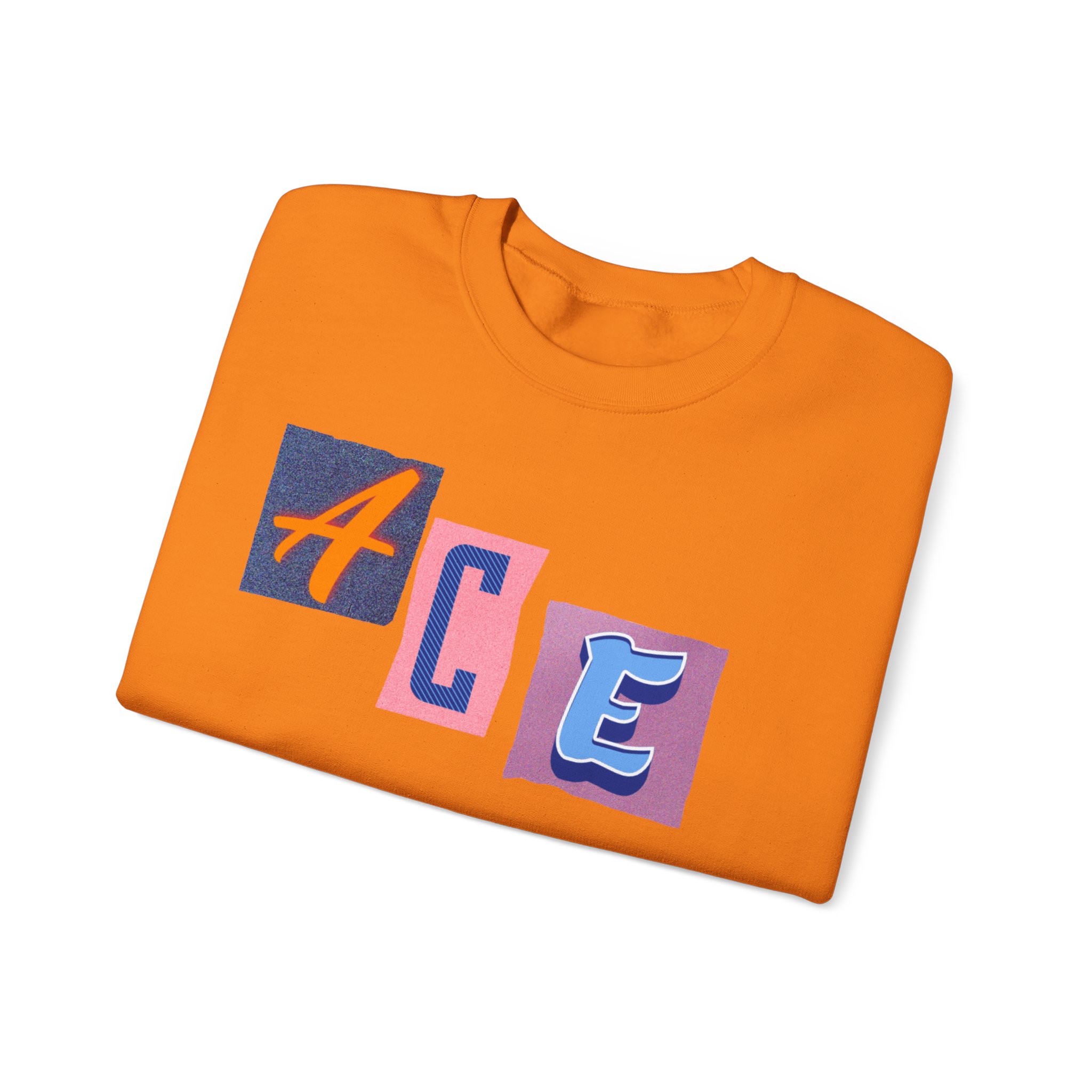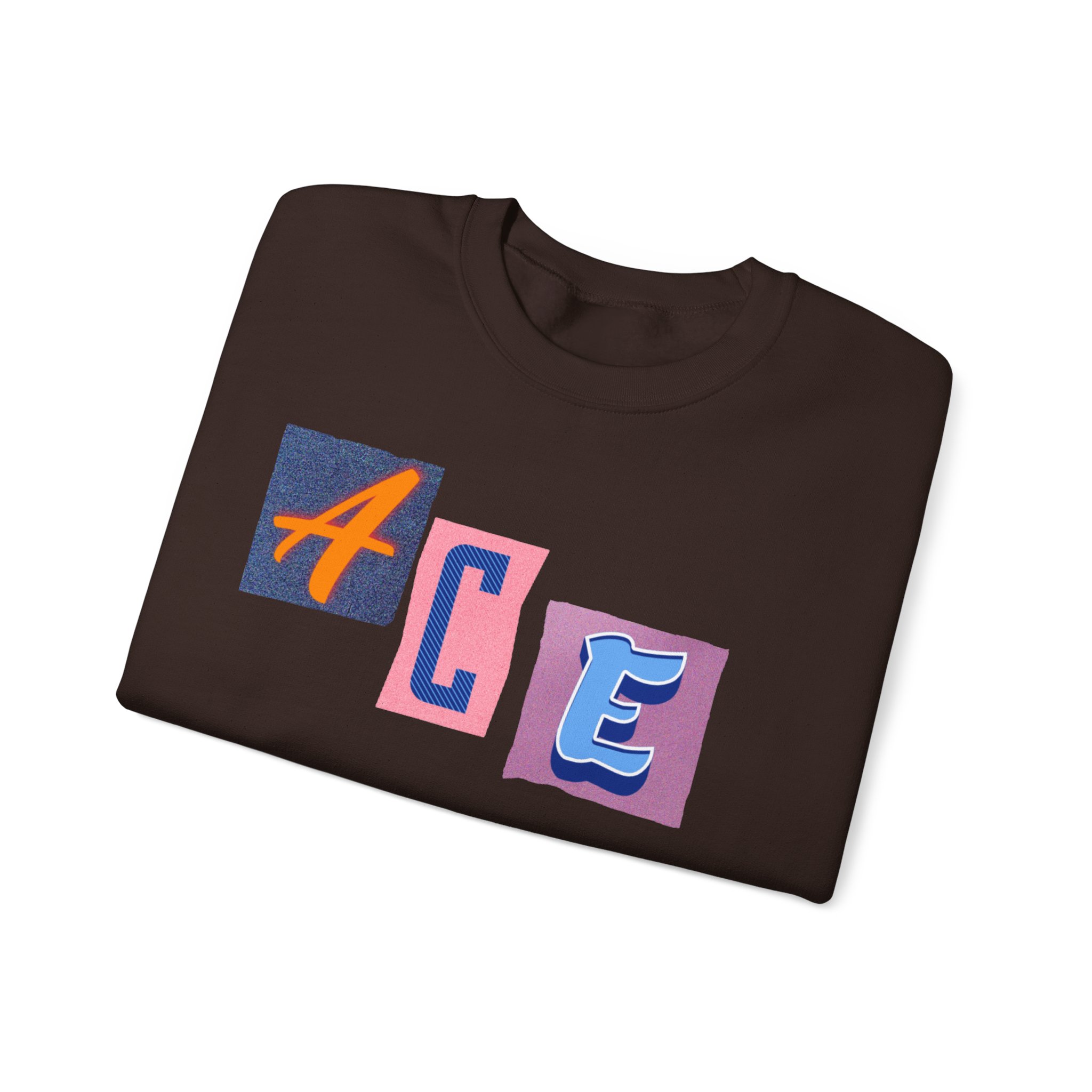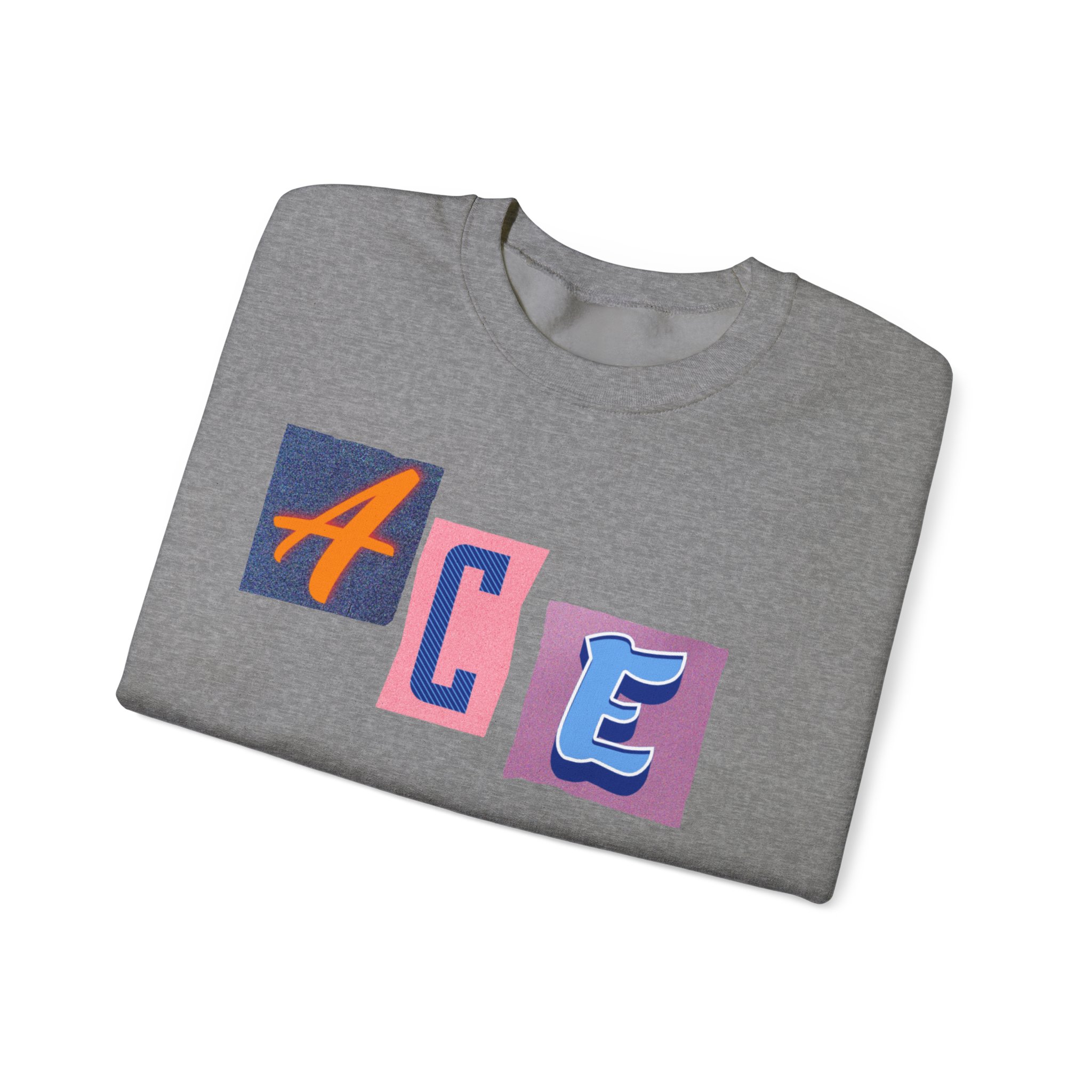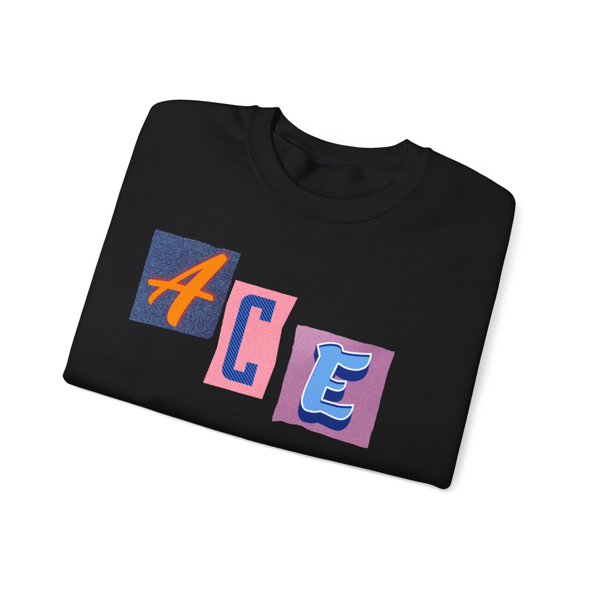 This cozy crewneck sweatshirt carries a playful, collage-style graphic that reads “ACE LIFE” in colorful, mismatched letter blocks. The medium-heavy cotton-poly blend feels warm and substantial without weighing you down. Classic crewneck lines, ribbed collar and cuffs, and tubular knit construction keep the silhouette clean and comfortable. It drapes easily for laid-back days at campus, meetups with friends, or chill evenings at home. The artful, slightly retro letterforms give the piece a nostalgic, creative vibe — an effortless way to show off personal flair while staying snug.