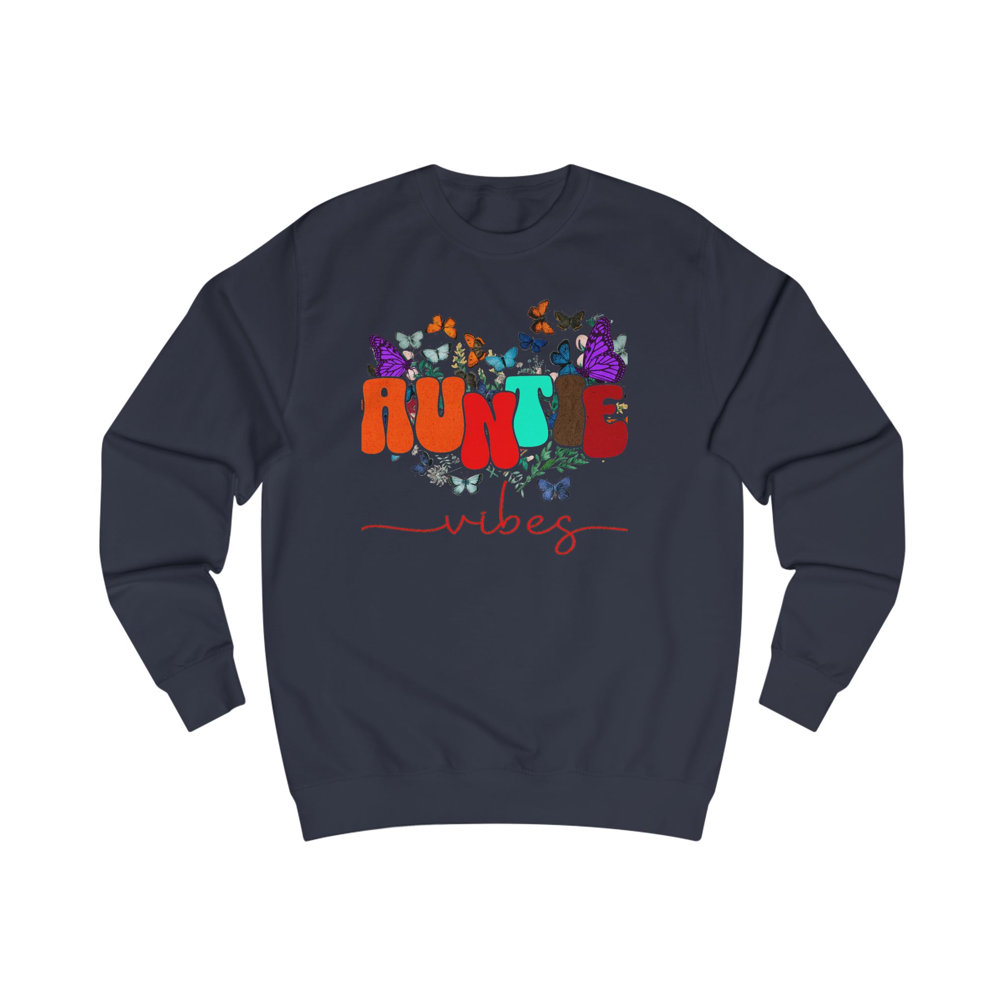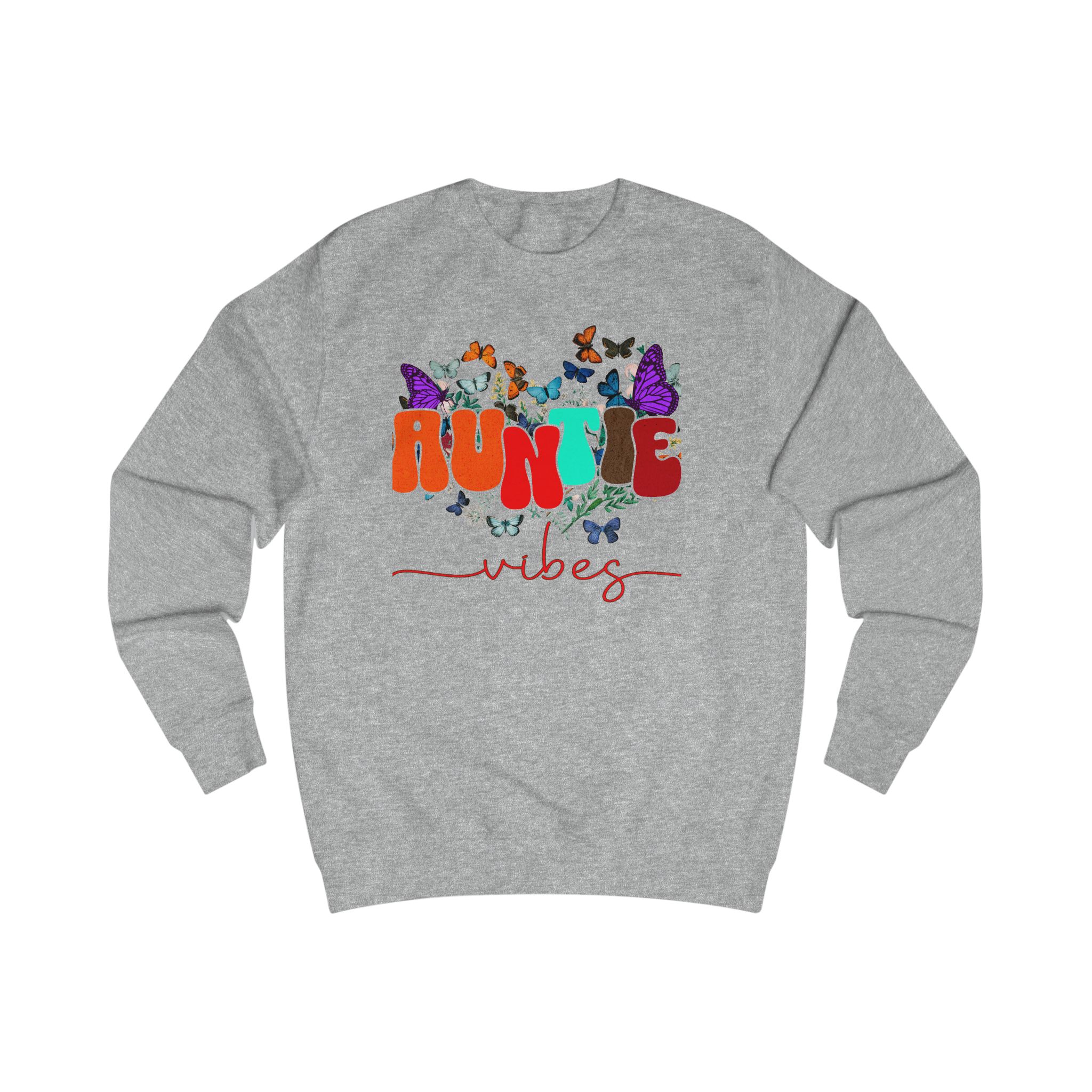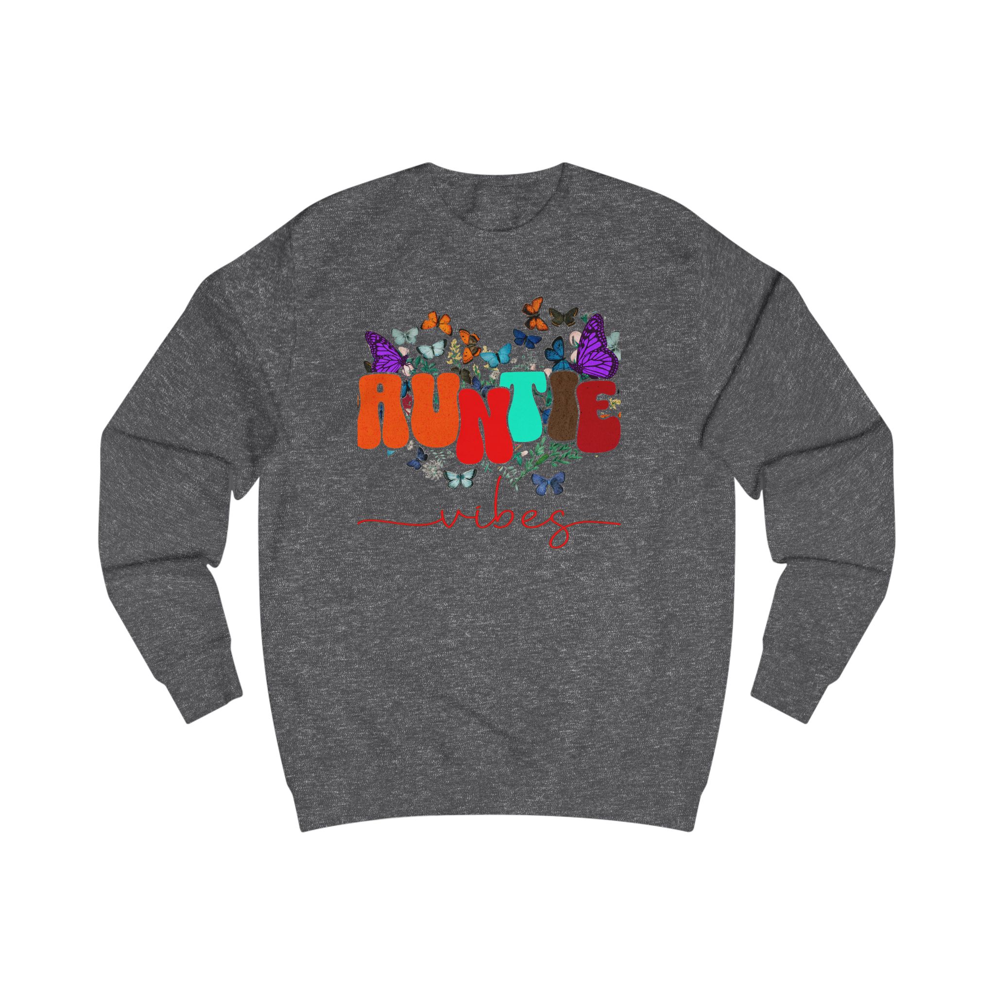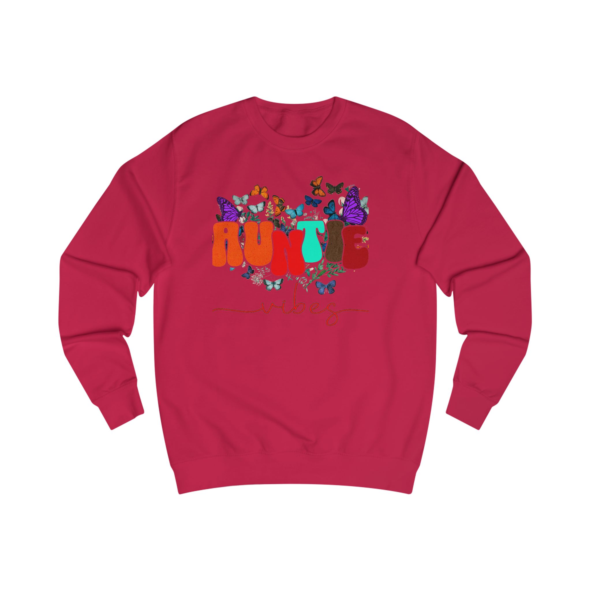 Soft, cozy, and a little playful — this sweatshirt carries that warm ‘auntie’ energy with colorful typography and fluttering butterflies. Lightweight enough for layered spring days, but substantial in fabric weight so it keeps its shape and feels substantial on cooler evenings. Wear it to weekend coffee runs, storytime with the little ones, or tucked into a casual dinner with family. The design settles into the chest area like a friendly hello, and the comfortable neckline and ribbed cuffs keep everything feeling familiar and lived-in. It’s for those who show up with snacks, hugs, and a touch of sparkle.