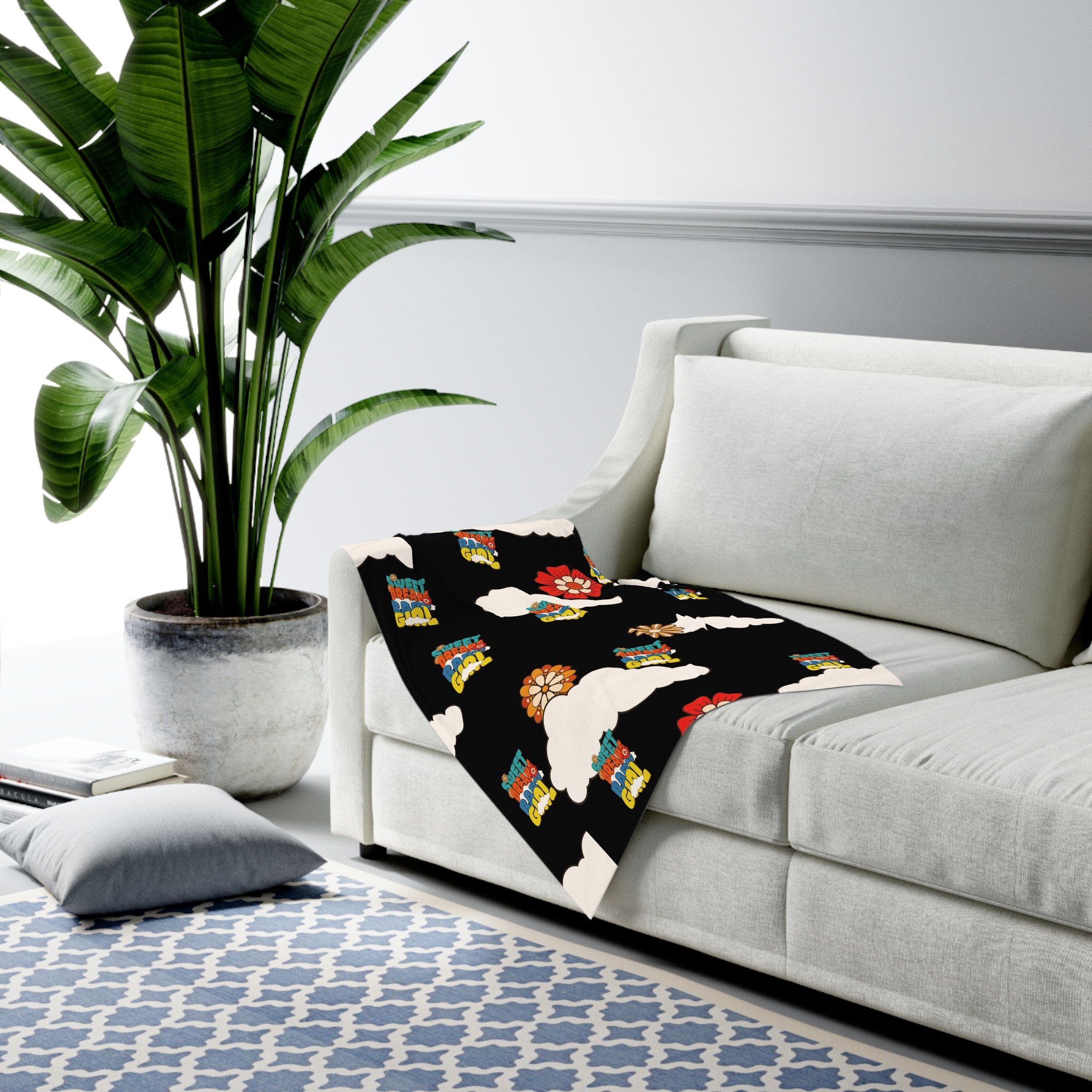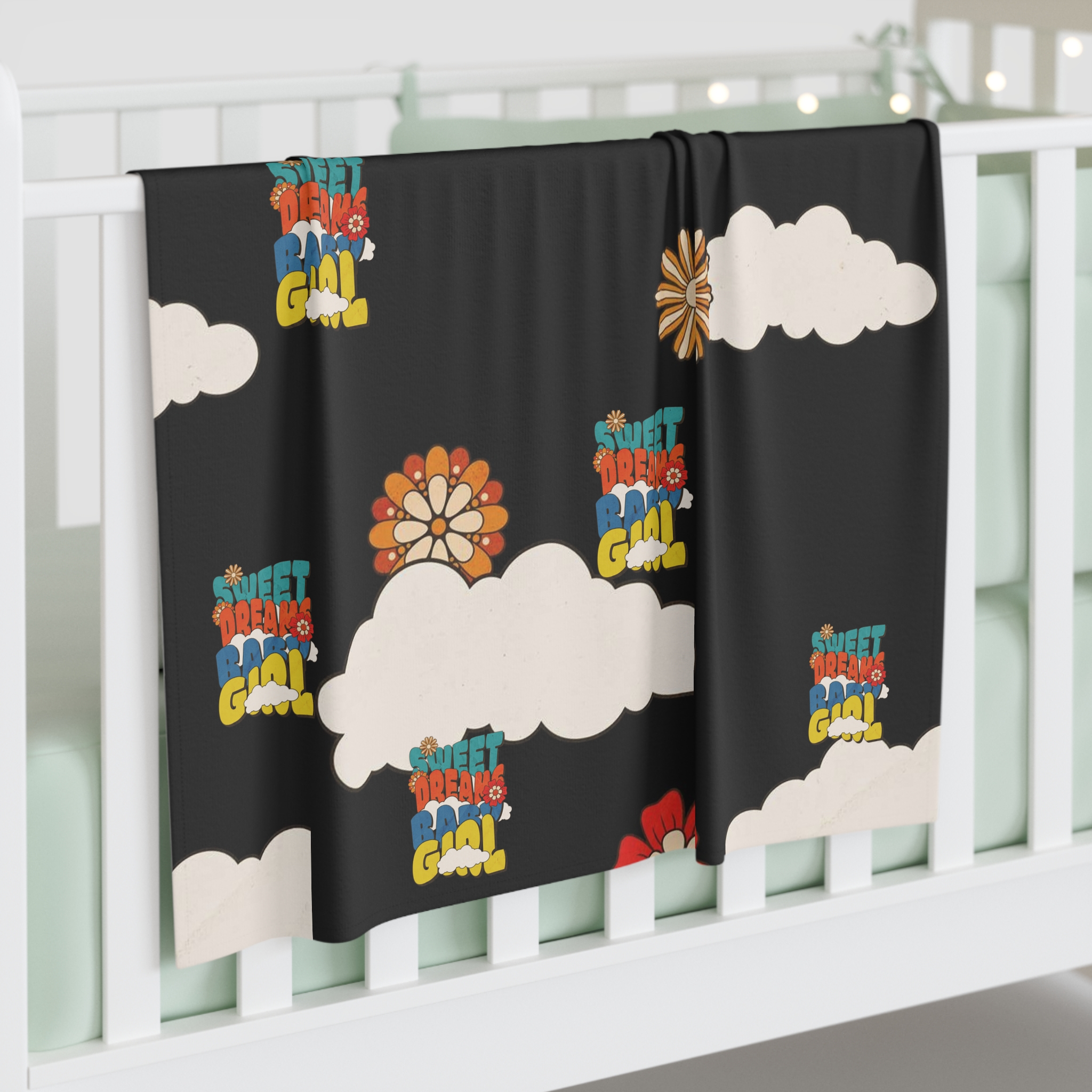 Be the first to review “Baby Swaddle Blanket — Retro Flowers & Clouds “Sweet Dreams, Baby” Pattern”