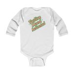 Soft, lightweight infant tee with a playful, graffiti-style design that reads in bubbly pink and white letters. The shirt feels gentle against baby skin and keeps its shape through washes thanks to reinforced side seams, shoulder tape, and a ribbed knit collar. It slips on easily, sits in a classic, true-to-size silhouette, and shows off the printed art centered on the chest—an outfit that adds a cheeky, street-inspired pop to everyday wear. Picture mornings at the park or cozy playdates: this tee layers under a hoodie or pairs with tiny joggers for a relaxed, modern baby look.