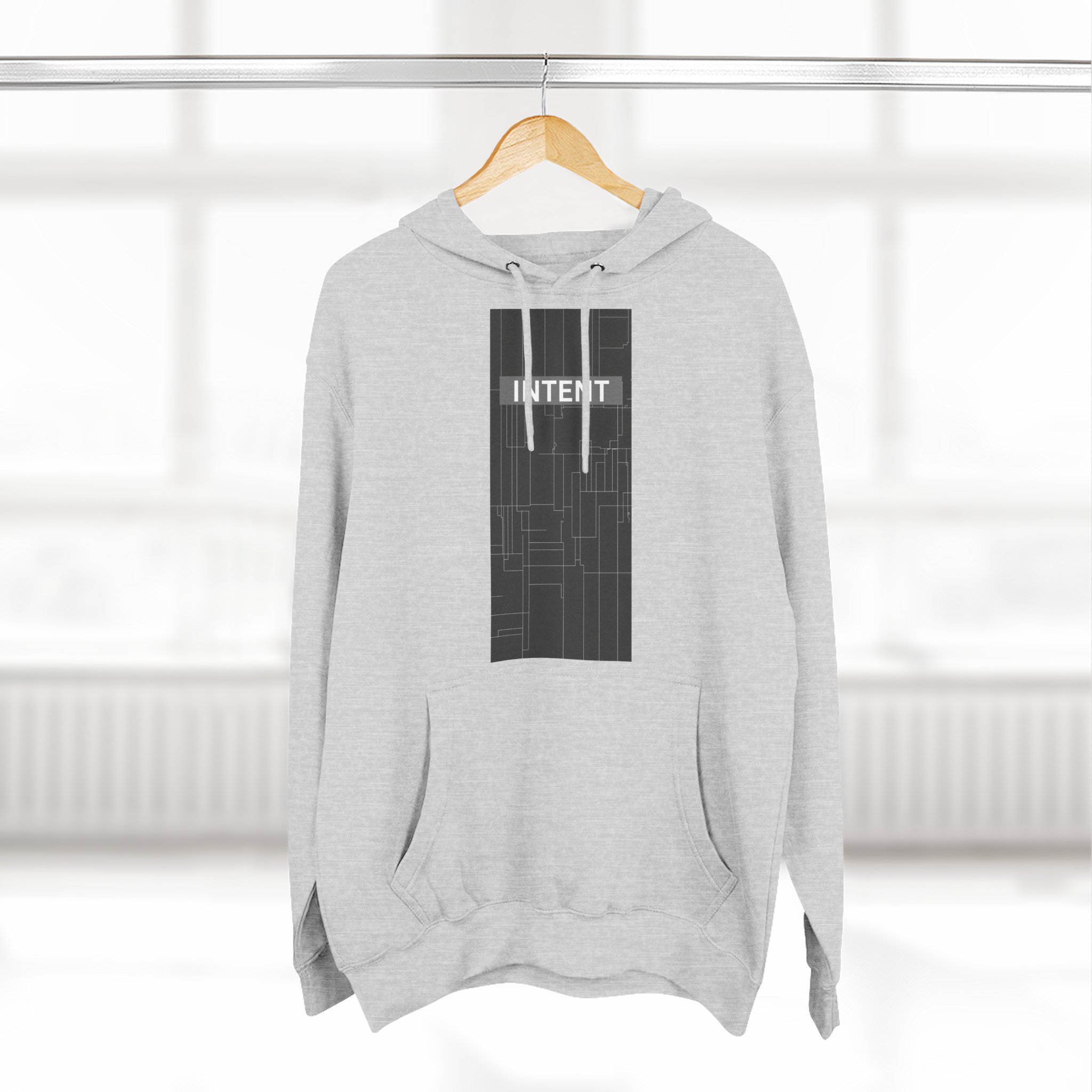 This hoodie brings calm focus to everyday wear. The three-panel hood and adjustable drawstrings create a cozy, structured frame around the face. A tall, minimalist graphic sits at the chest, its subtle lines and muted palette giving the piece a quiet, modern edge. Thick, brushed fleece holds warmth without bulk, while a roomy kangaroo pocket keeps hands toasty on walks, late-night city errands, or slow mornings at a favorite cafe. Built with strong stitching, twill neck tape, and a soft hand-feel, it wears in gently and maintains shape wash after wash — the kind of layer you reach for when you want to feel steady and intentional.