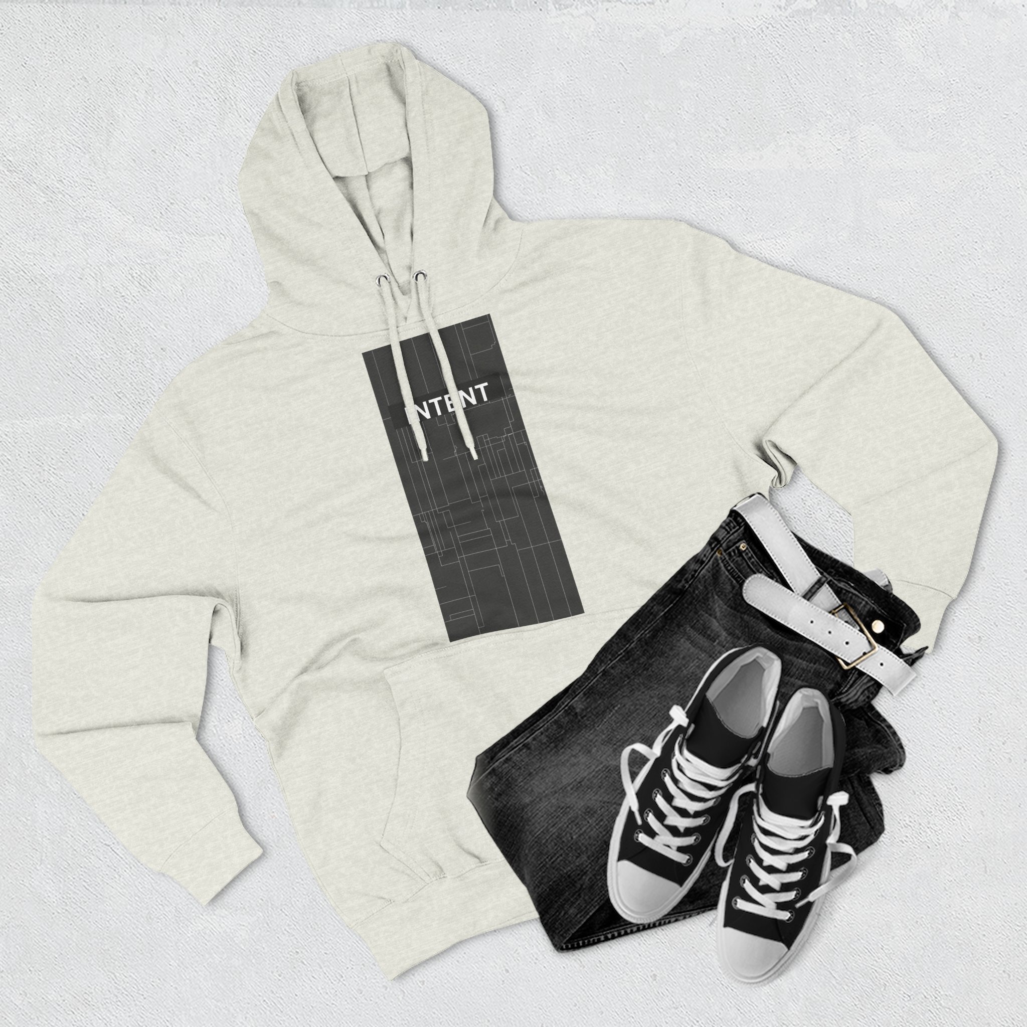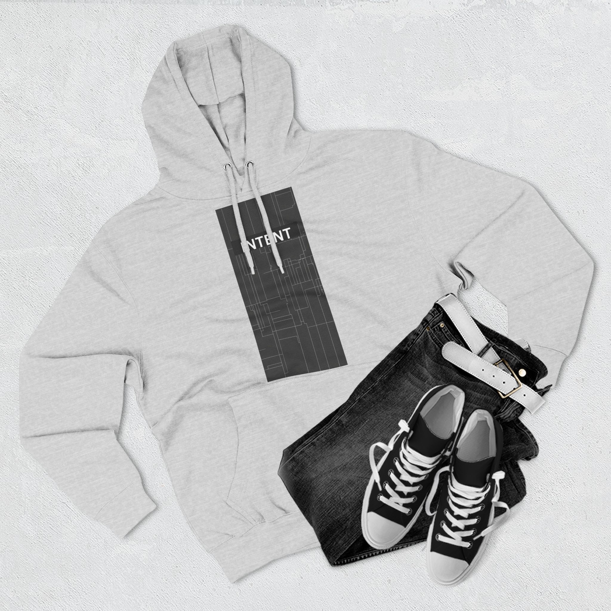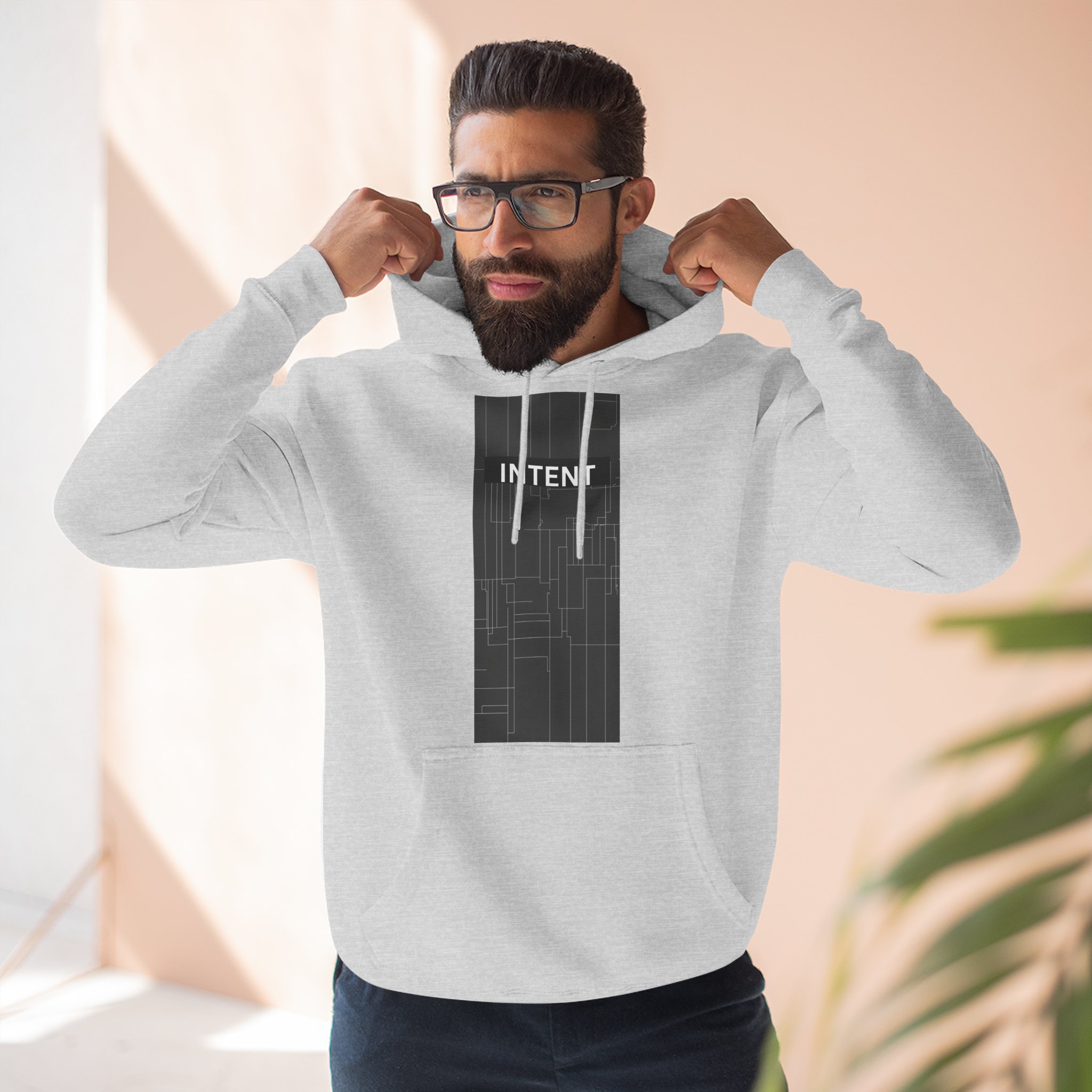 Be the first to review “INTENT Limited Edition Minimalist Men only Hoodie — Three-Panel Graphic Fleece Pullover”