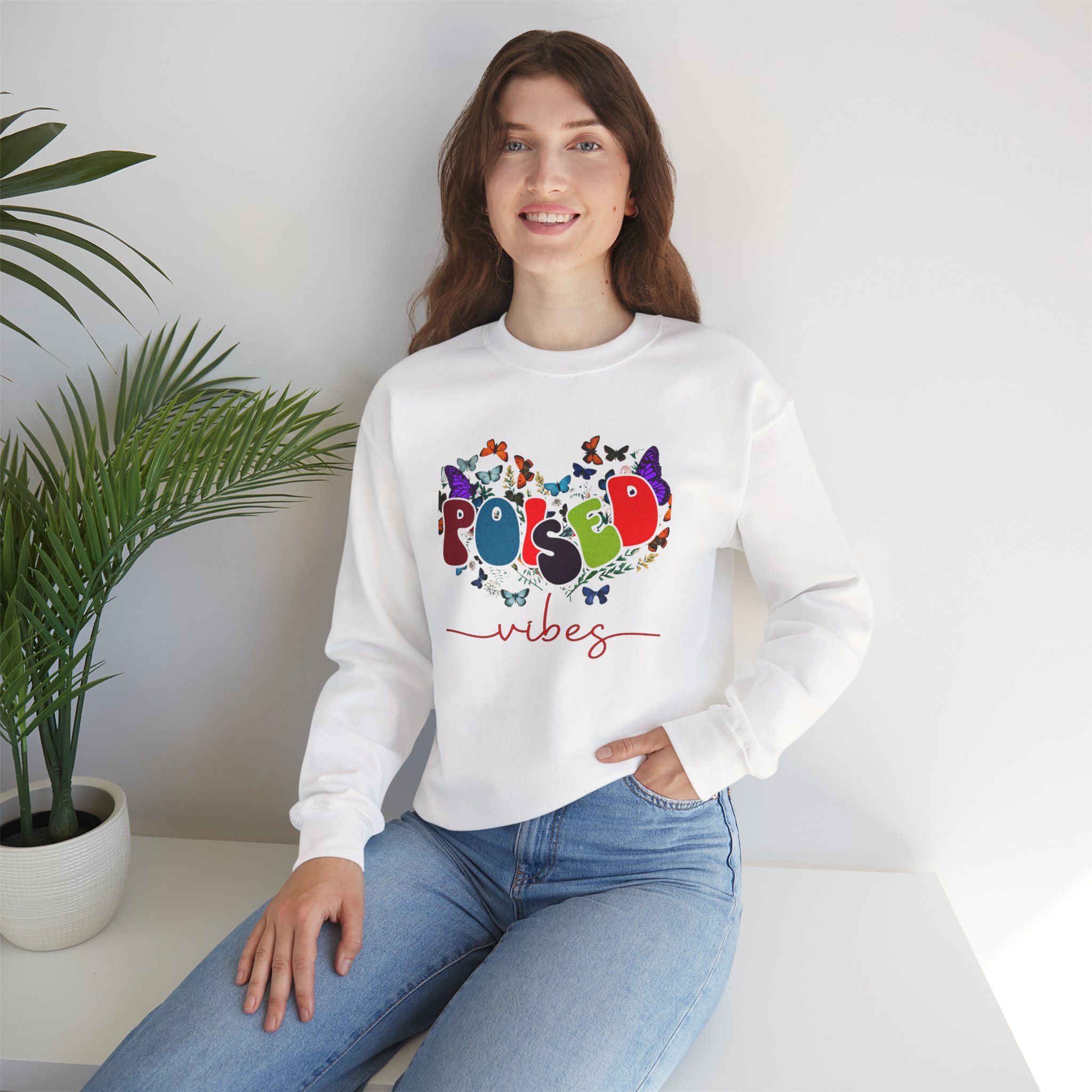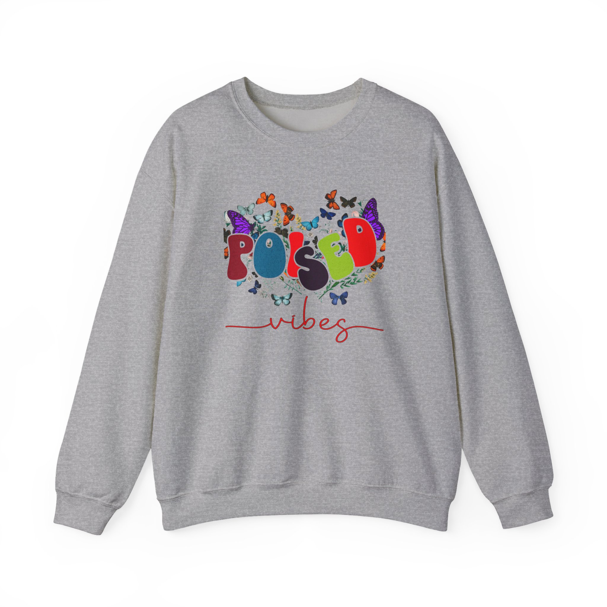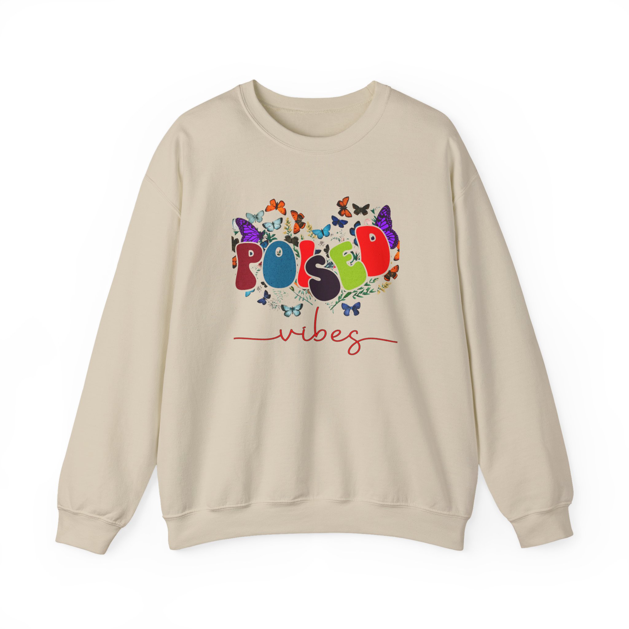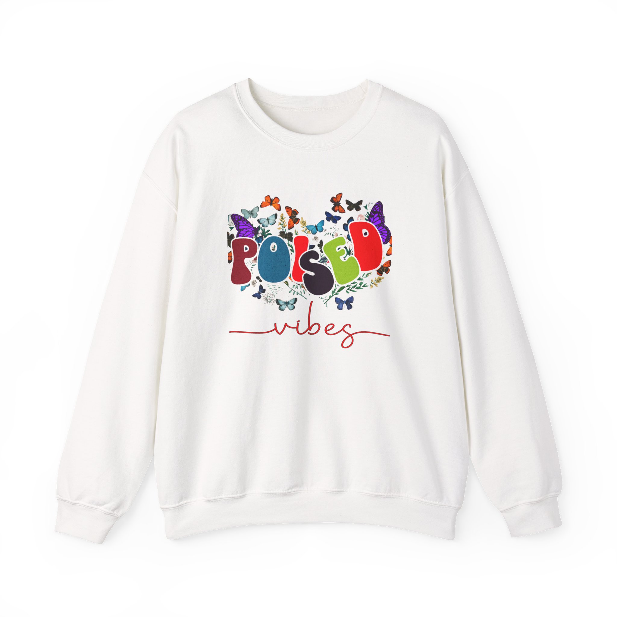 Soft, roomy, and quietly confident — this crewneck wraps you in a gentle warmth while letting your style do the talking. A medium-heavy cotton-poly blend keeps the fabric cozy without feeling bulky. The colorful, butterfly-accented “Poised vibes” design sits across the chest, brightening cool mornings and relaxed evenings. Thoughtful construction — tubular knit for a smooth silhouette, ribbed collar and cuffs that hold their shape, and double-needle stitching at stress points — means this sweatshirt moves through life with you. Subtle details like a tear-away label and OEKO-TEX certified dyes make it comfortable and responsible to wear. Slip it on for slow coffee runs, breezy walks, or low-key hangouts where calm confidence matters.