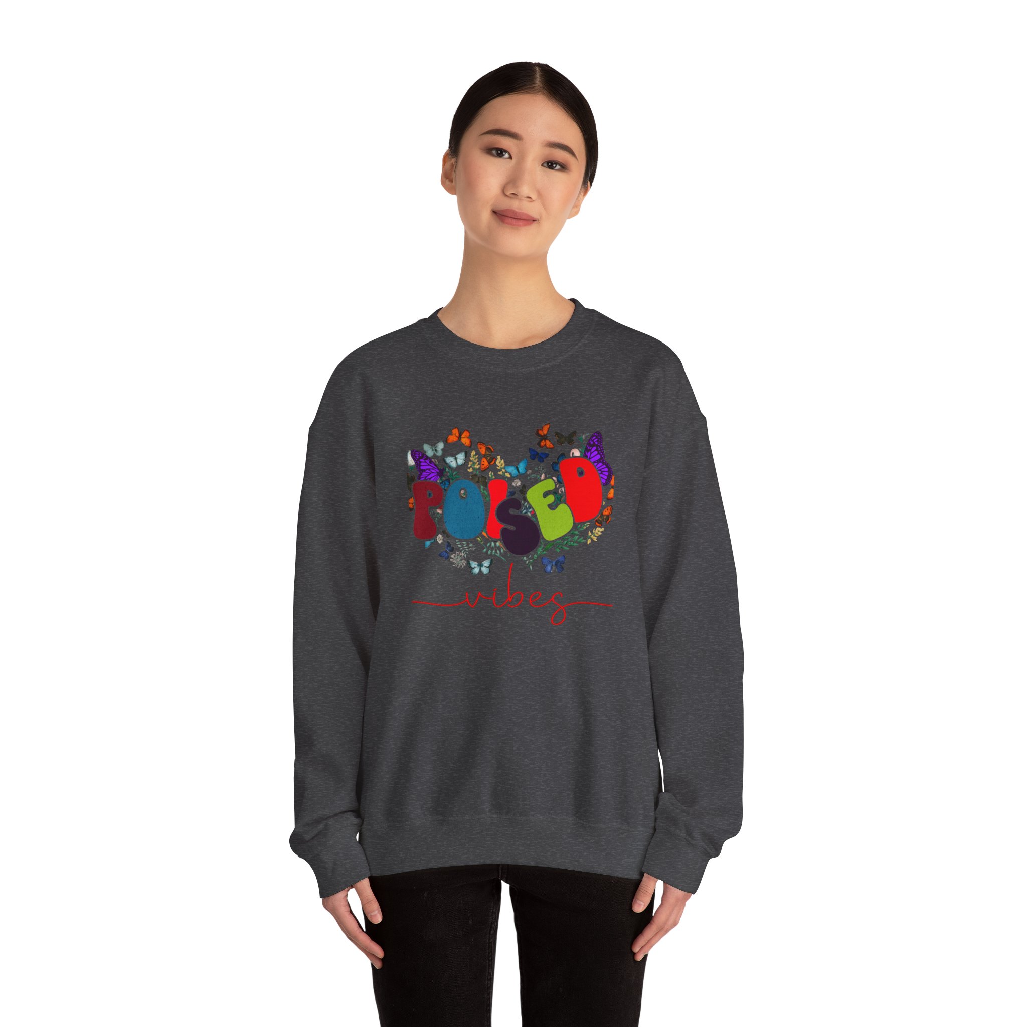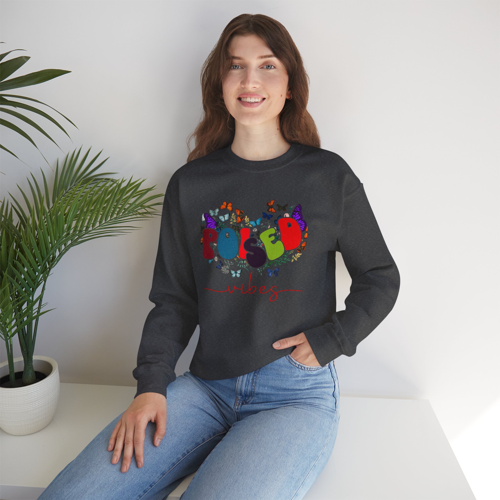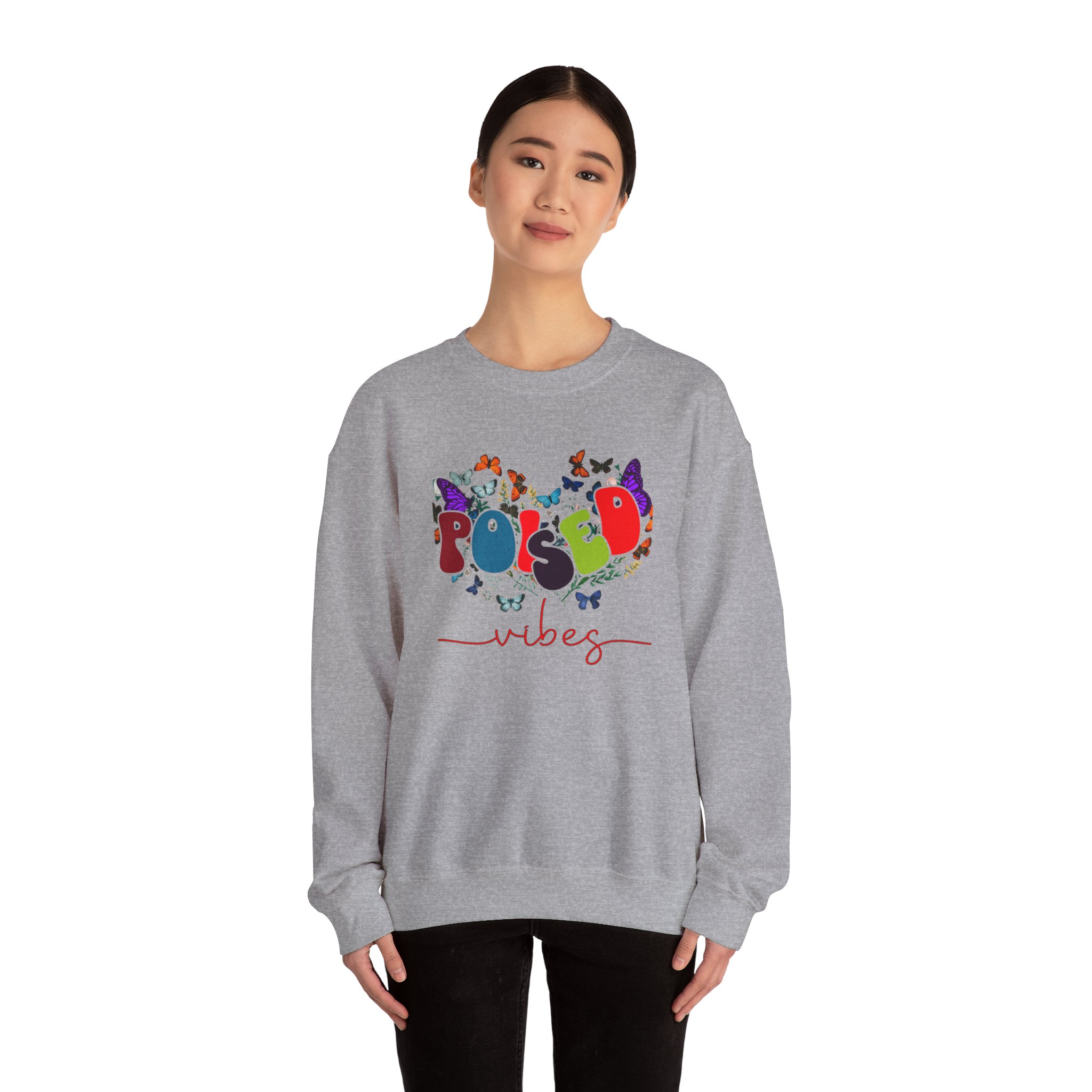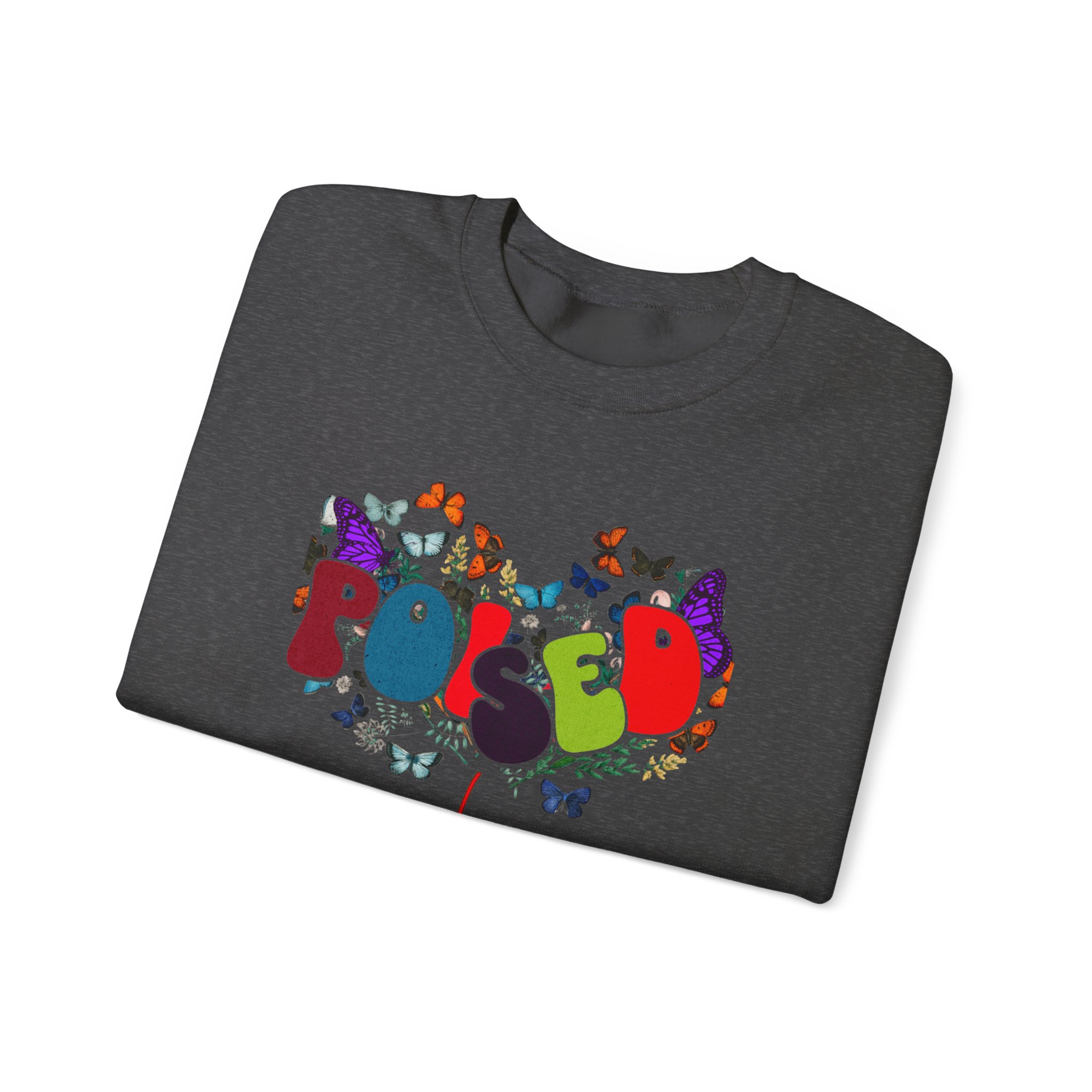 Soft, roomy, and quietly confident — this crewneck wraps you in a gentle warmth while letting your style do the talking. A medium-heavy cotton-poly blend keeps the fabric cozy without feeling bulky. The colorful, butterfly-accented “Poised vibes” design sits across the chest, brightening cool mornings and relaxed evenings. Thoughtful construction — tubular knit for a smooth silhouette, ribbed collar and cuffs that hold their shape, and double-needle stitching at stress points — means this sweatshirt moves through life with you. Subtle details like a tear-away label and OEKO-TEX certified dyes make it comfortable and responsible to wear. Slip it on for slow coffee runs, breezy walks, or low-key hangouts where calm confidence matters.