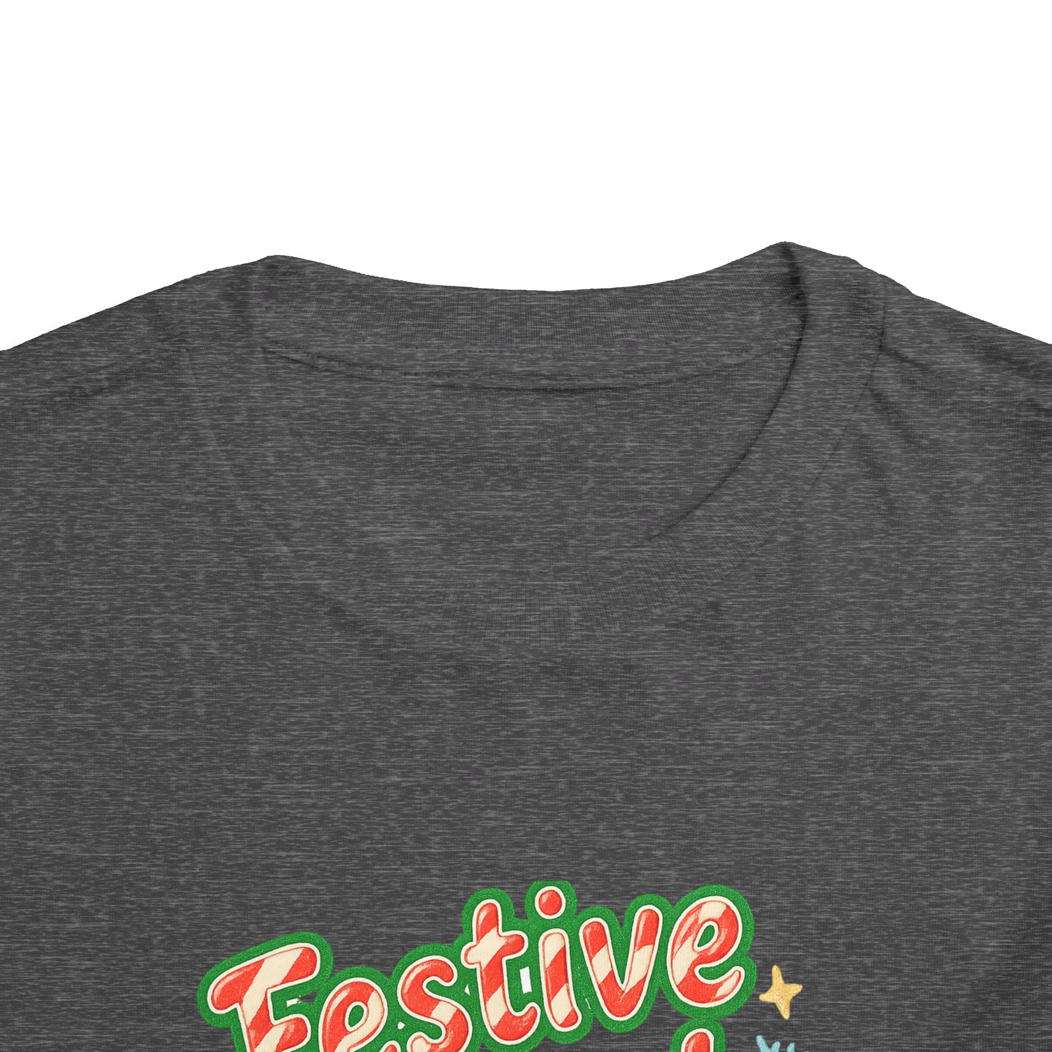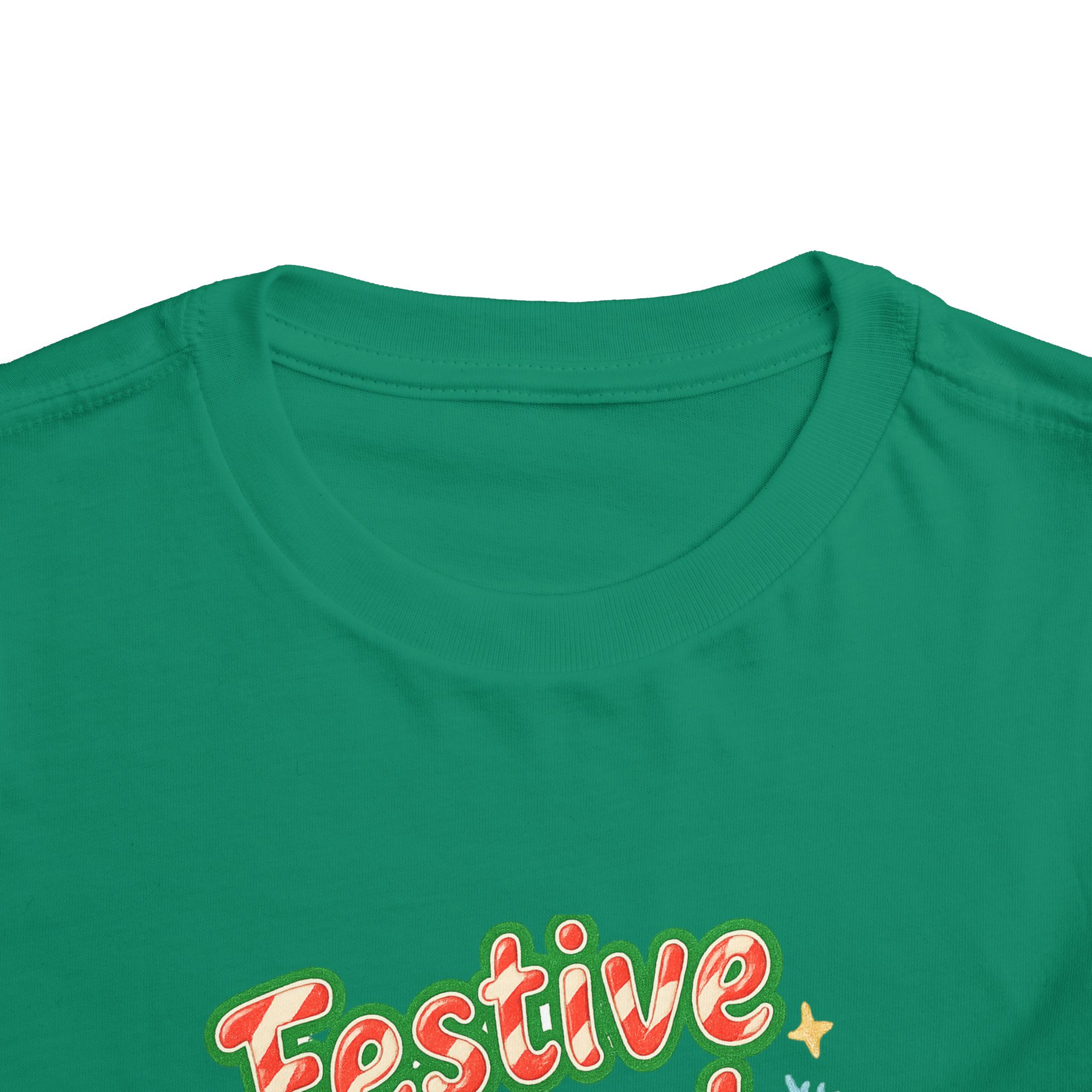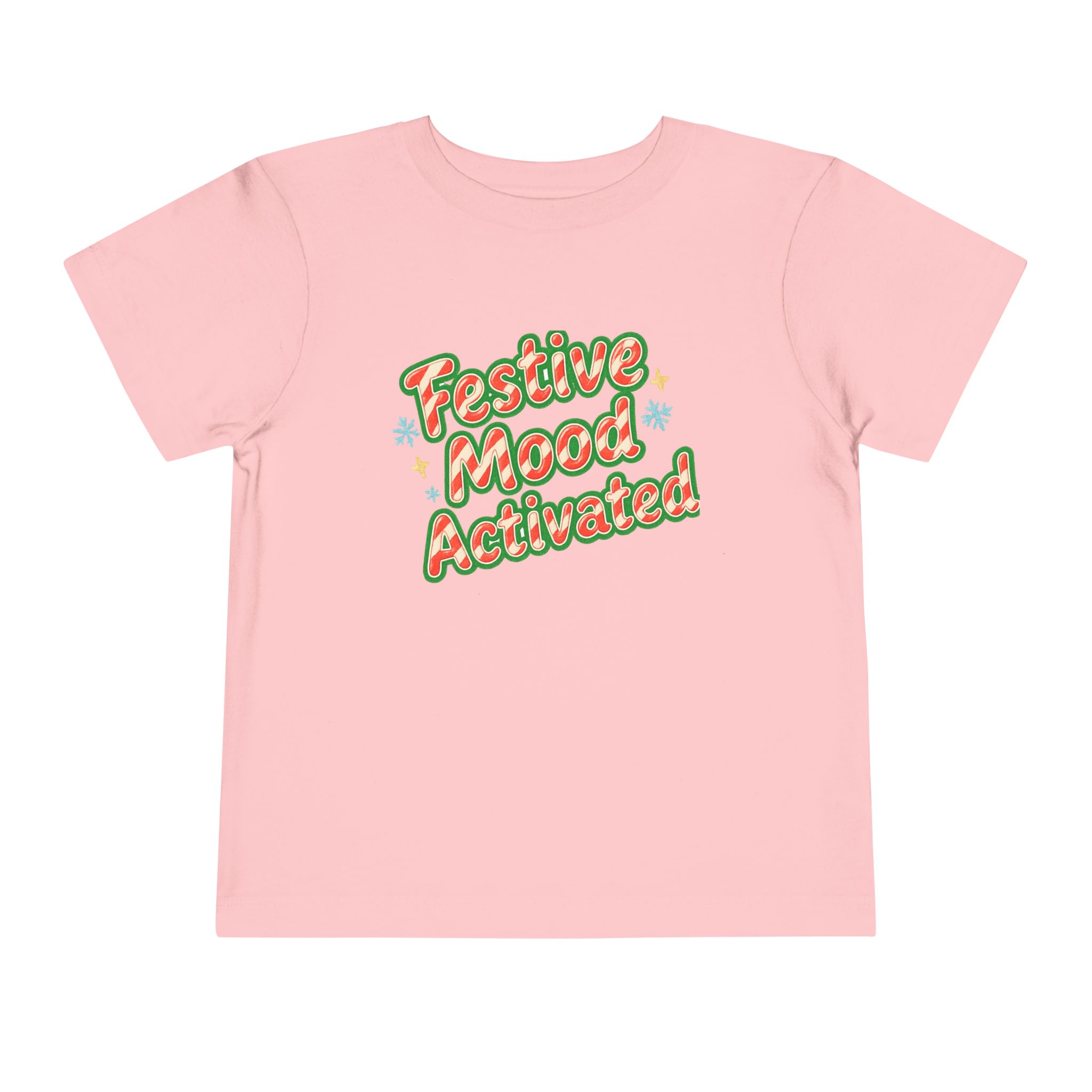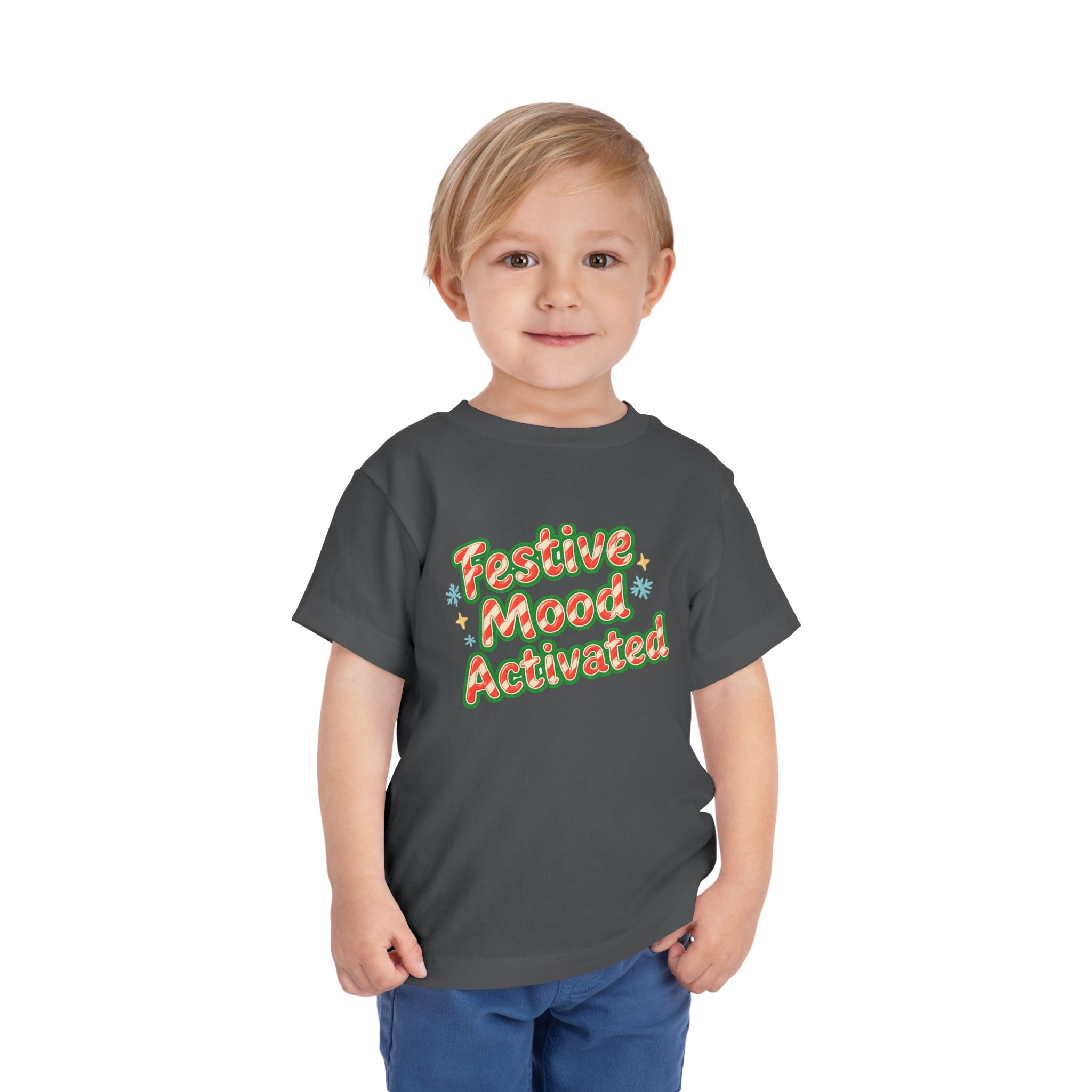 Little holiday mischief, ready to wear. This toddler tee reads “Festive Mood Activated” in candy-cane swirls and warm green shadowing that catches the light with a playful pop. It feels light and airy against tiny skin, moves with the wiggles, and keeps the focus on cookie crumbs and carols — not itchy tags or stiff fabric. Slip it on for tree-trimming, neighborhood strolls to see lights, or laid-back family mornings with cocoa steam and giggles. The vintage-inspired script and subtle sparkle of printed stars bring a cozy, cheerful energy that matches a child’s wide-eyed excitement for seasonal fun.